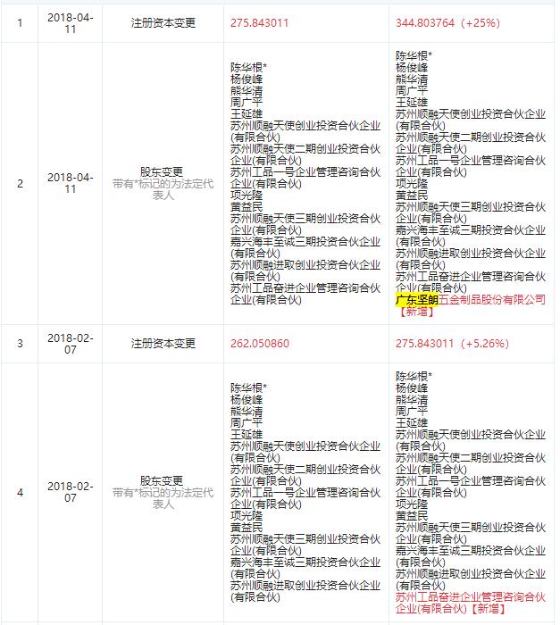 根据信息显示,新增两家合伙企业分别为苏州工品奋进企业管理咨询合伙企业、广东坚朗五金制品股份有限公司。