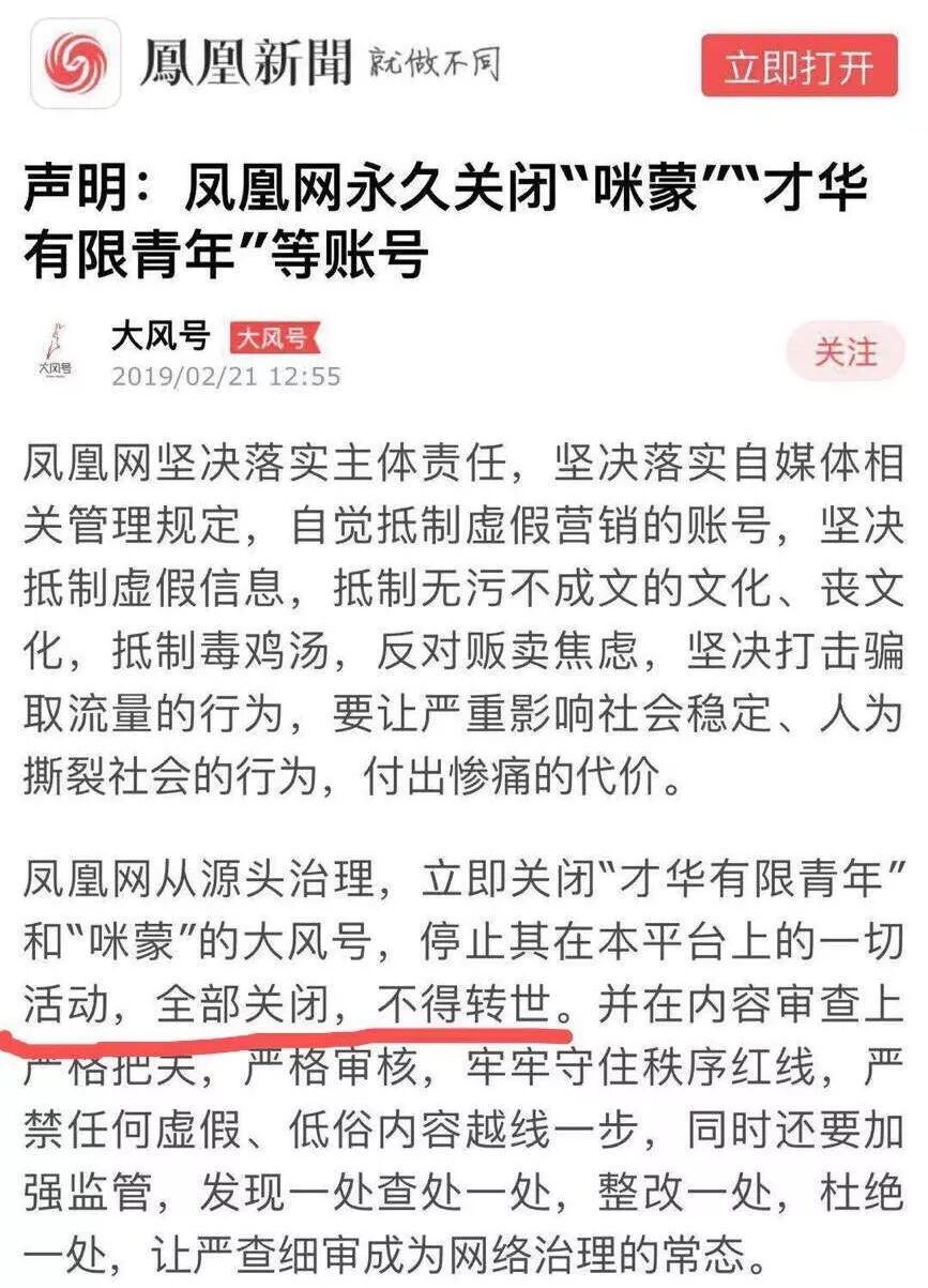 昨天发现,“咪蒙”公众号已经注销,显示“该账号已自主注销,停止使用”。与此同时,咪蒙旗下“才华有限青年”公众号也已经注销。旗下美妆号还在,但改名为李粒粒LiLiLI;咪蒙旗下公众号“好疼的咪蒙”改名为“爱就是知道”。此前,受《寒门状元之死》洗稿杜撰风波影响,咪蒙团队在2月1日发布道歉信称,咪蒙公众号停更2个月、咪蒙微博永久关停。另据悉,凤凰网发布声明并立即关闭“才华有限青年”和“咪蒙”的大风号,停止其在本平台上的一切活动,全部关闭,不得转世。今日头条也发布消息称封禁@才华有限青年 @咪蒙 @偏不及腰 @手捧芦竹等头条号。