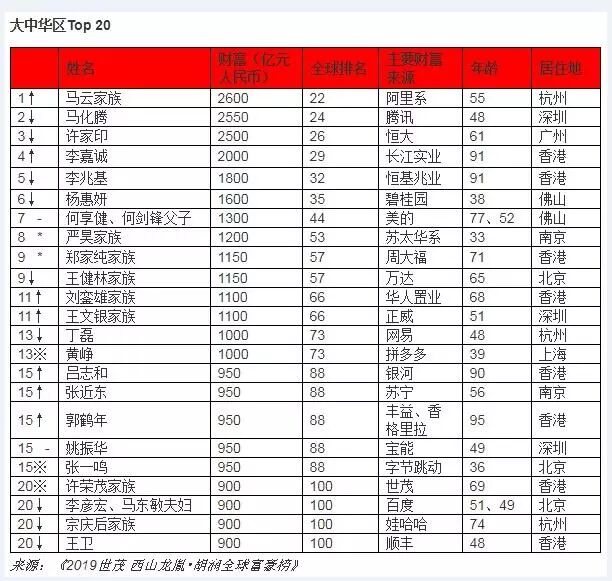 1、2019胡润全球富豪榜:马云以2600亿元成为全球华人首富