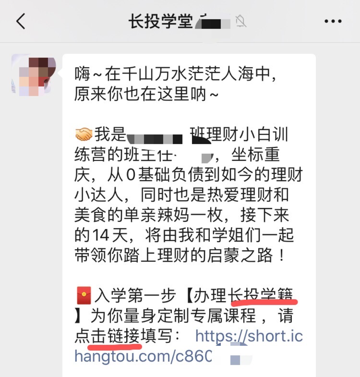 等到课程完成2/3的时候,大部分机构就开启了转化模式。太早了用户还没体验明白,太晚了怕用户觉得厌烦提前撤了。几个托儿一唱一和开始询问正式课程,配合上新一轮品牌和课程优势强势讲解,以及往期学员案例(或群主以身说法)开启了转化的序幕。