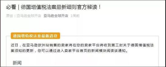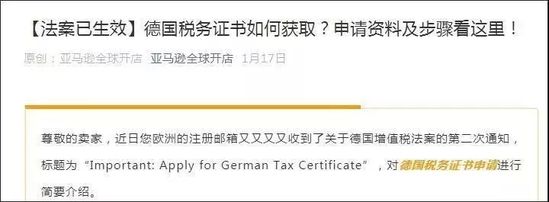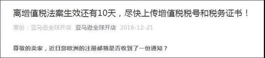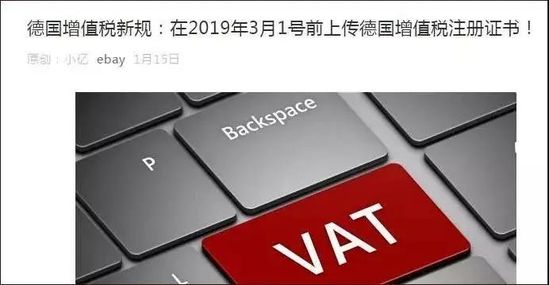 2019年1月1日德国增值税法规开始生效,亚马逊、eBay、Wish三大电商平台不断地紧急催促卖家完善资料。