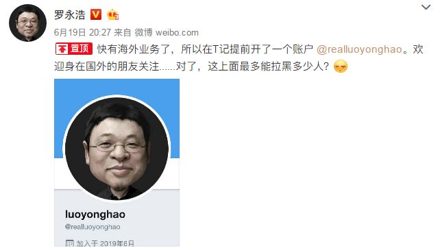 近日,老罗在微博宣布开通推特账户,表示锤子科技海外业务即将展开,欢迎身在国外的朋友关注。