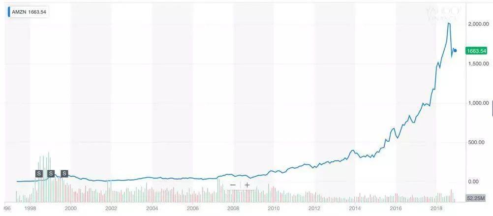 同样,即便我们都知道亚马逊是一家伟大的公司,而它的股票从上市时到现在已经涨了1000倍。可如果能有机会在它上市之初,也就是1997年时就购买这只股票,我们也很难一直将它握到现在而不卖掉。