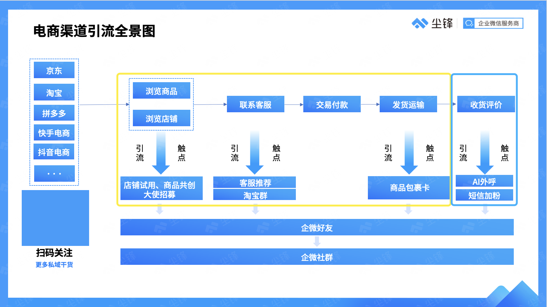 在此前尘锋独家创作整理的私域全流程引流手册中,我们曾为客户提供过一份详尽的电商平台引流方法,包含不同环节、不同方式的私域沉淀方法。